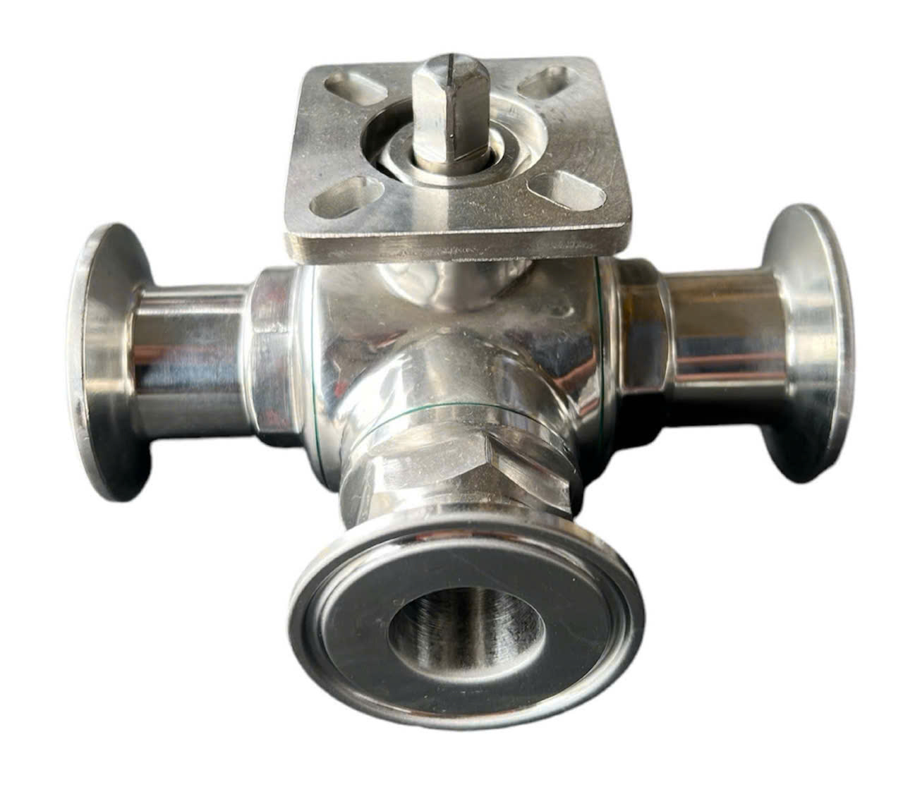 VAN BI 3 NGÃ CHỮ T INOX VI SINH CÓ ĐẾ NỐI CLAMP